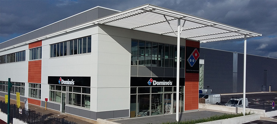 Nous accompagnons le réseau Domino's dans le déploiement de leur programme d'enseigne pour le nouveau concept ainsi que la